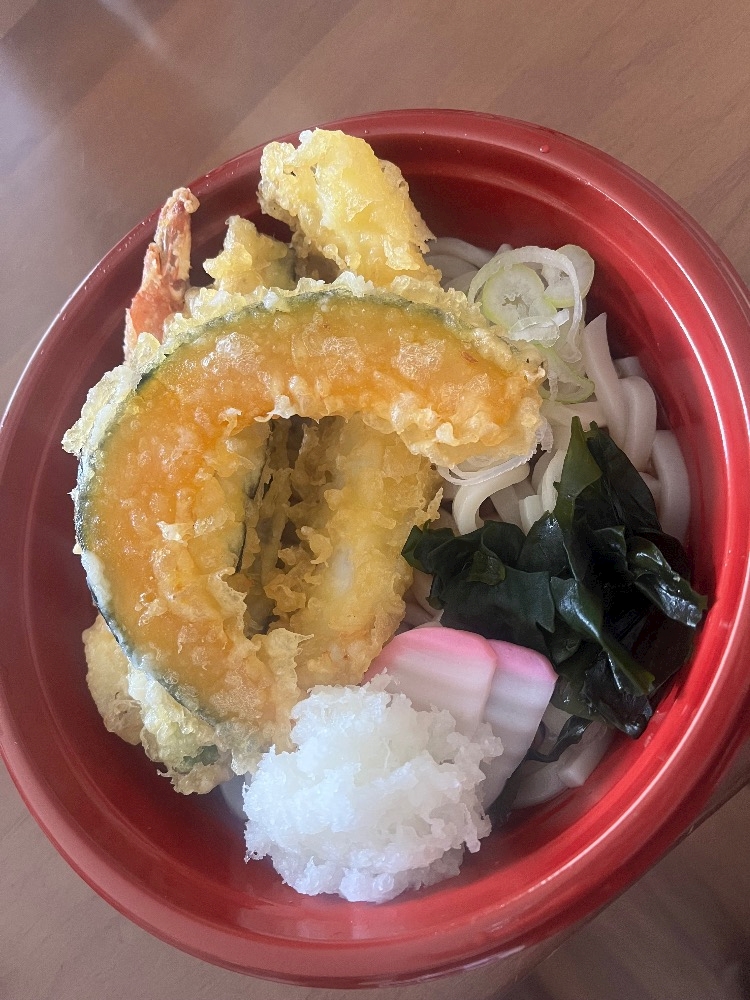 - お昼ご飯🎵🍽️今日はゆうみの大好き天めんです❣️これからの季節冷たいのオヌヌメ🩷