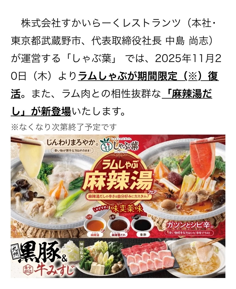 ラムしゃぶ麻辣湯が