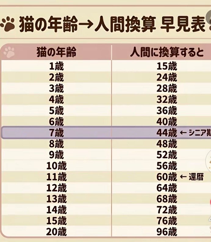 猫の年齢表