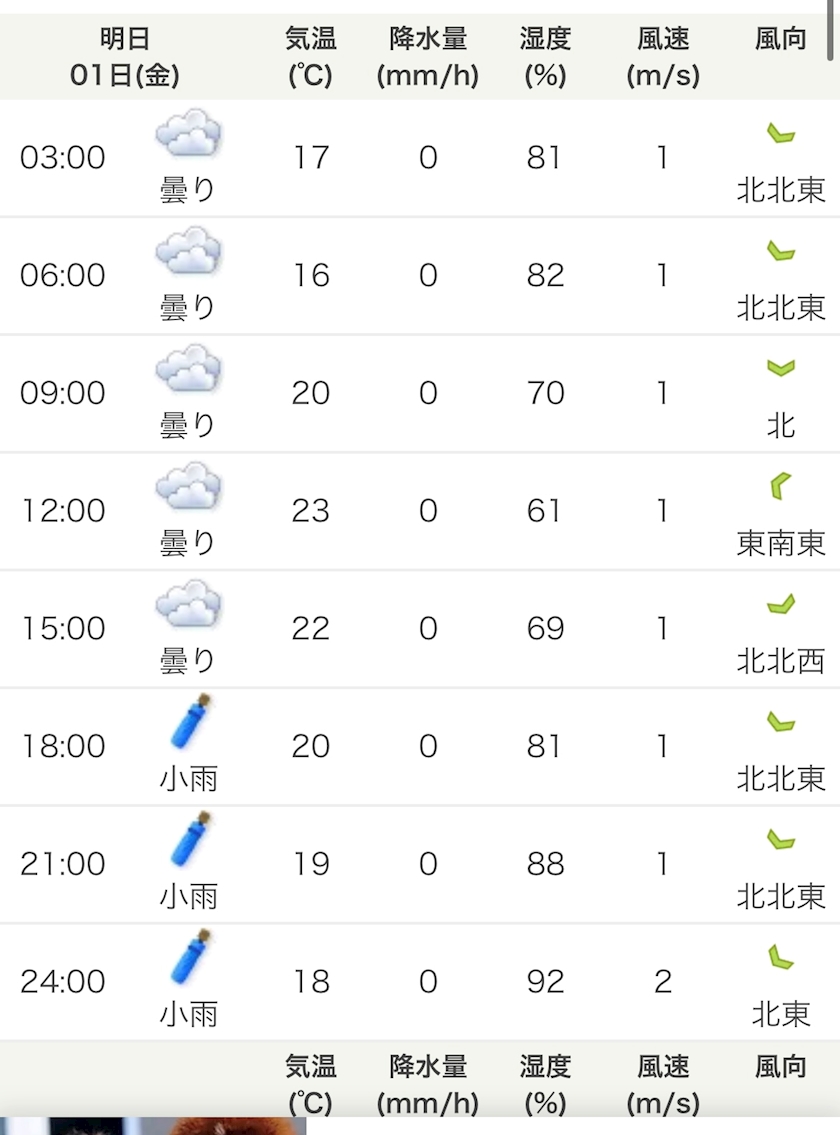 今日は曇りのち雨
