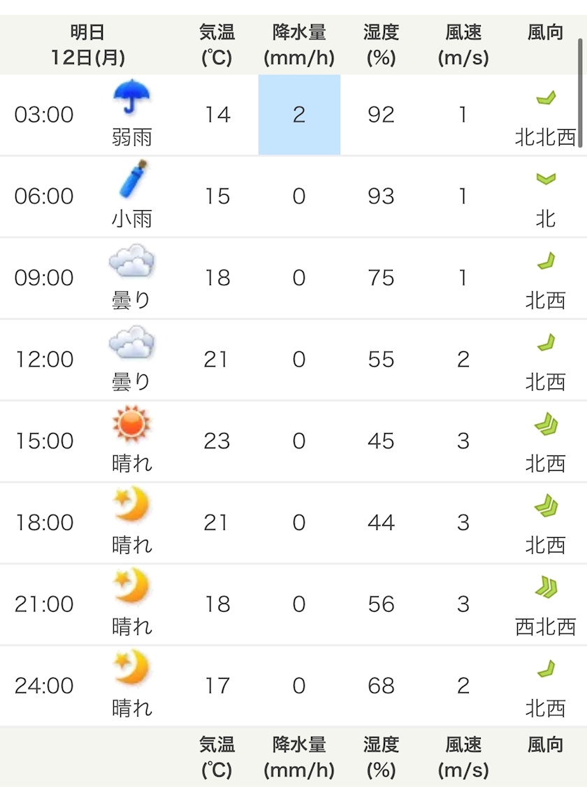 朝には雨止んでるみたいで