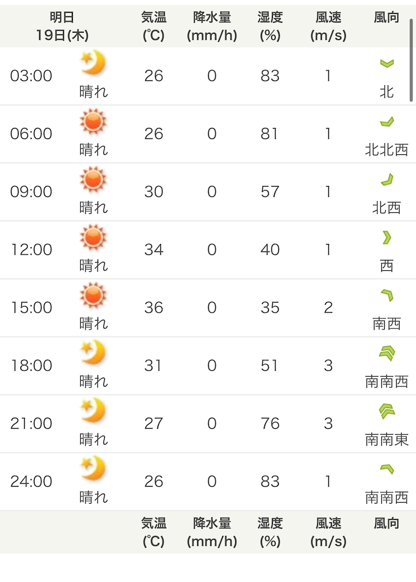 最高気温36度