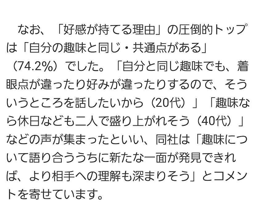 相手の趣味を通して新しい世界見れるのも