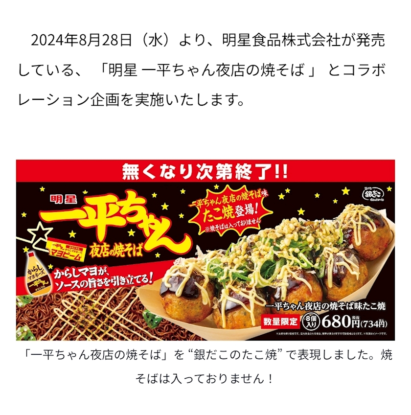一平ちゃんコラボの銀だこ🐙🐙