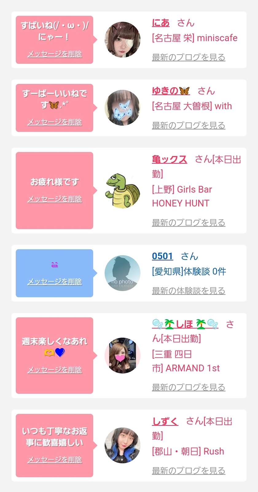 お休み頂いてる日に連絡くれた仲良し様たち