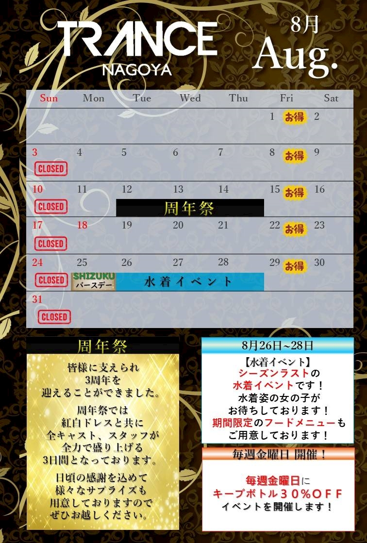 8月のイベント情報💁♀明日出勤するよ! - 愛瀬 りな💋 - TRANCE・トランス - 名古屋 錦のキャバクラ