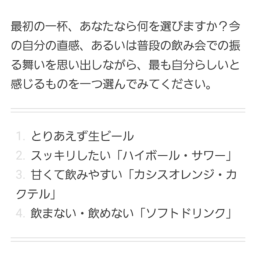 ちなみにわたしは②を選びました🍺