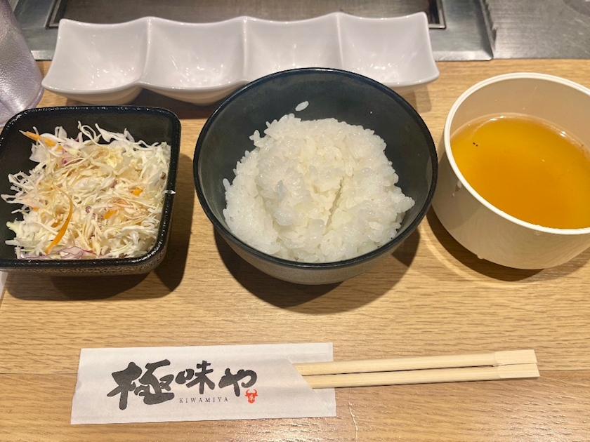 セットのサラダ、ごはん、スープ