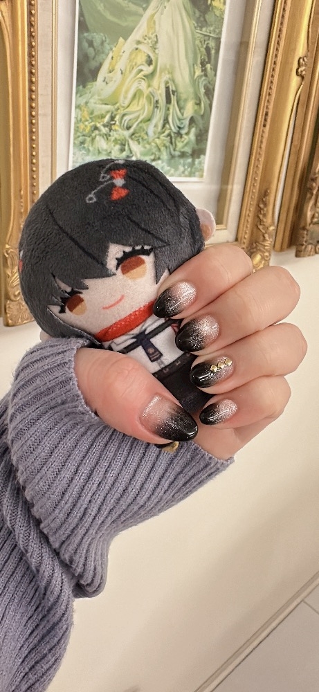 昨日のカラーを変えた黒とピンクネイル✨️