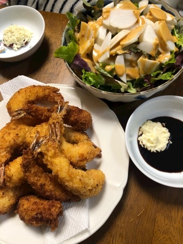 今日はエビフライとカブのサラダ