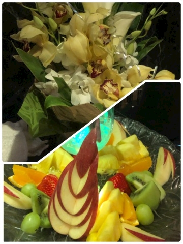 卓上は潤ちゃんの作ったお花とお店からのフルーツでとても華やかで