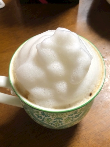 気分が乗ってシャカシャカしまくって、濃い目に入れたコーヒーに温まったミルクを注いだら