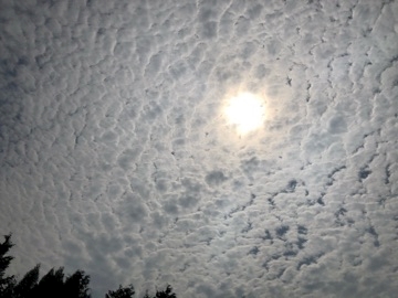 すごい薄い鱗の様な雲の合間に太陽が射してて