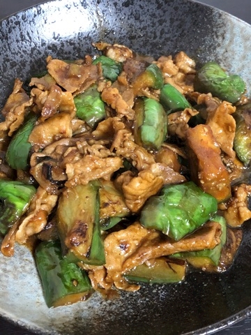 を使って青ナスと豚肉の味噌炒め