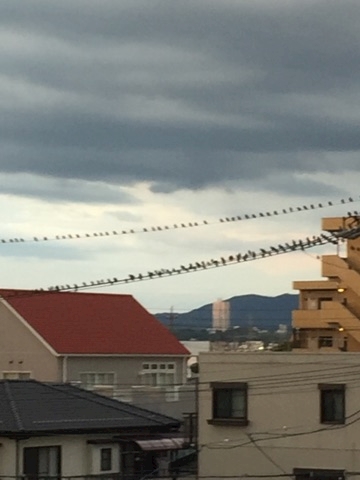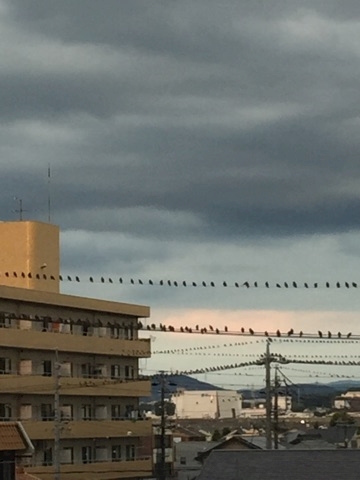 電線にぎゅーぎゅー詰めで止まってる