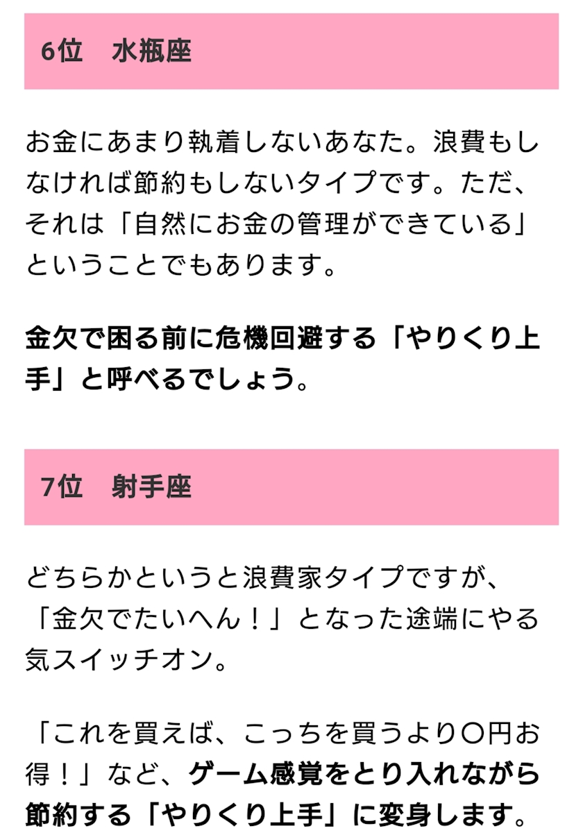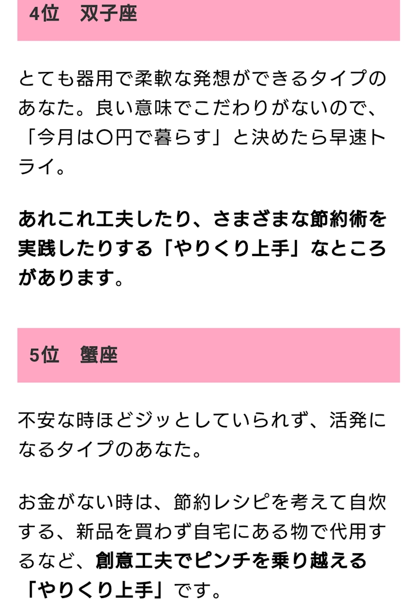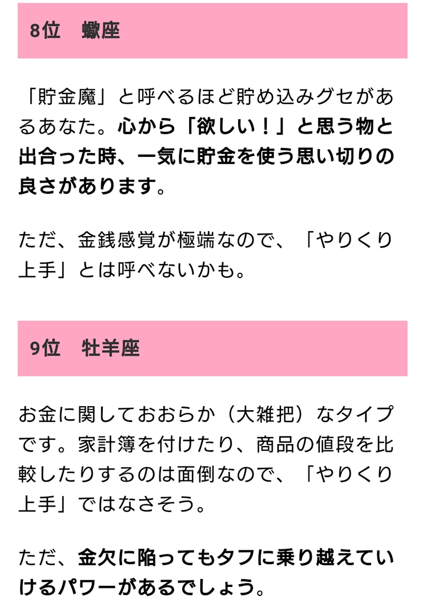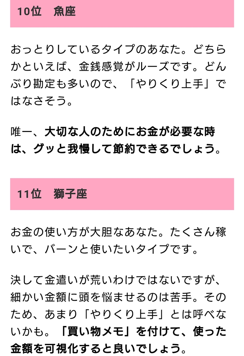 やりくり上手な星座ランキング~