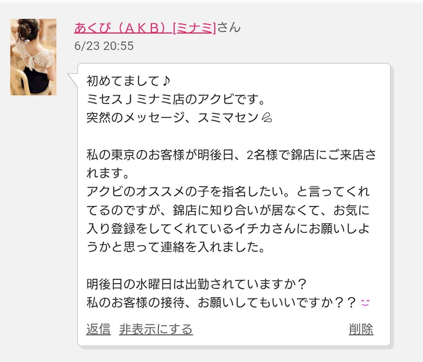 水曜日にmrsJミナミのあくびさんのお客様がご来店⸜(*ˊᗜˋ*)⸝