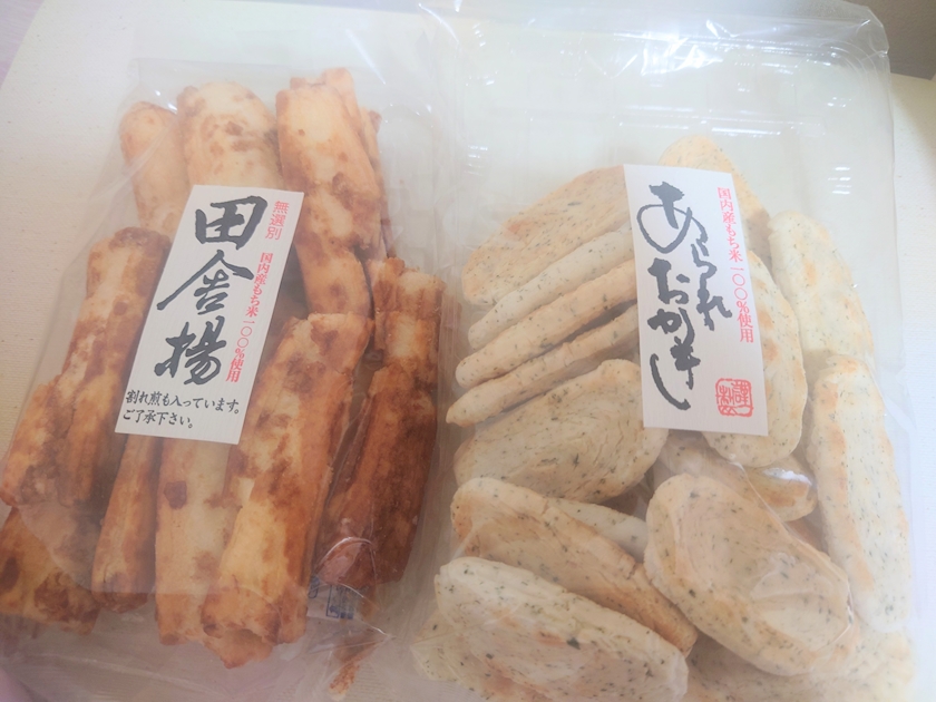 右のおかきは