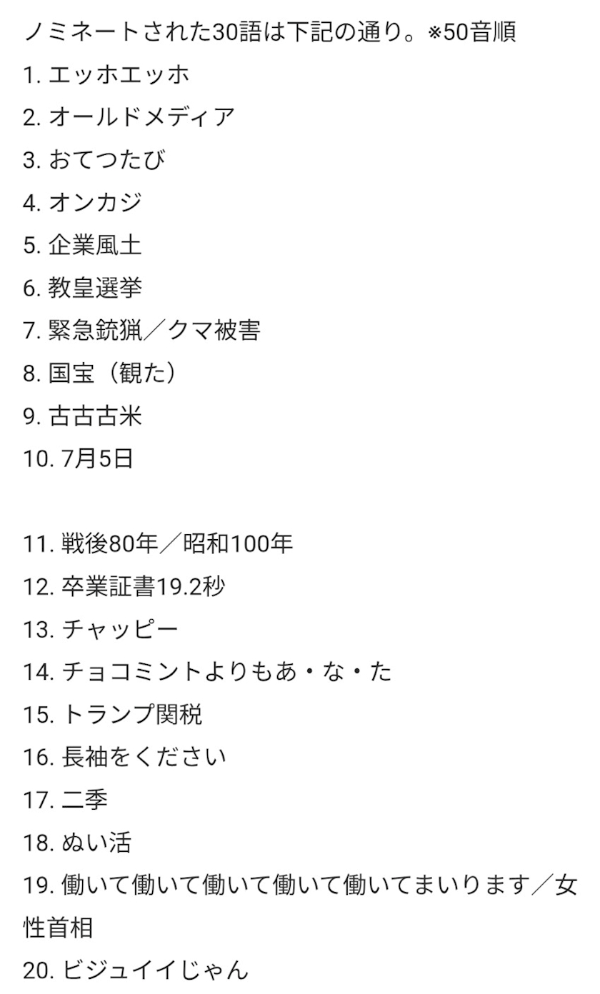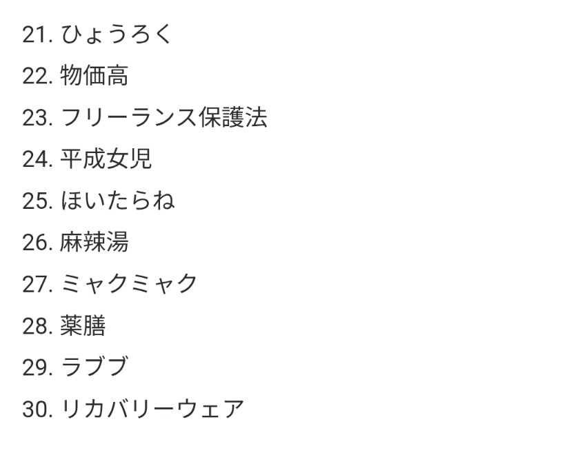 - 私は、これ全部は分からないけどノミネートされた言葉たち(・∀・)