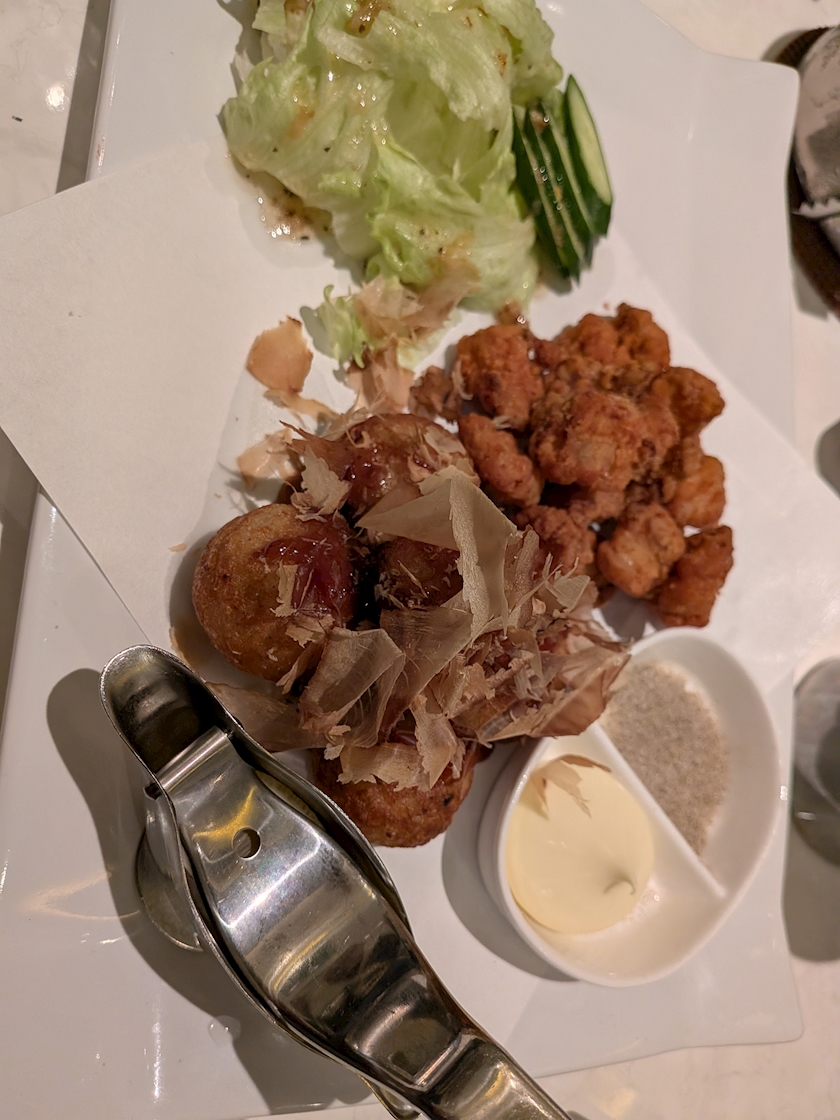 途中で小腹が減ってしまった~軟骨の唐揚げ&揚げたこ焼き輝いて見えた♫