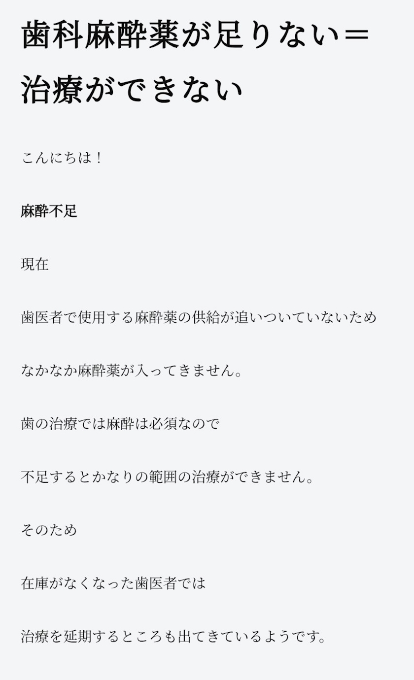 歯医者さんは麻酔不足のとこが多いらしい(☉。☉)!