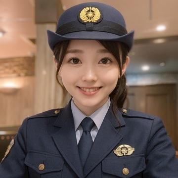 婦人警官が笑顔で居る