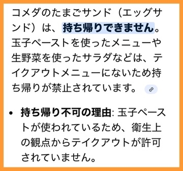 - コメダのたまごサンドはテイクアウト出来ないって知ってましたか❓