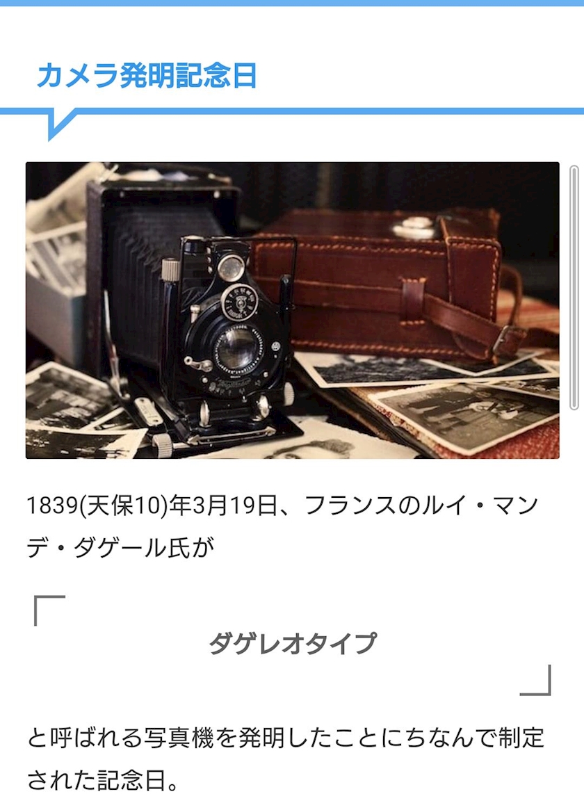 あ、今日はカメラ発明記念日だって❣