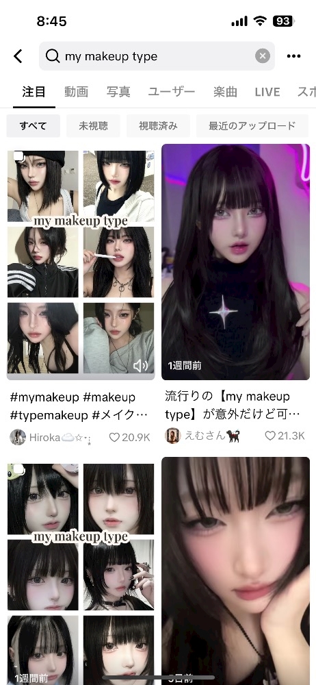 TikTokで流行りの「my makeup type」とか