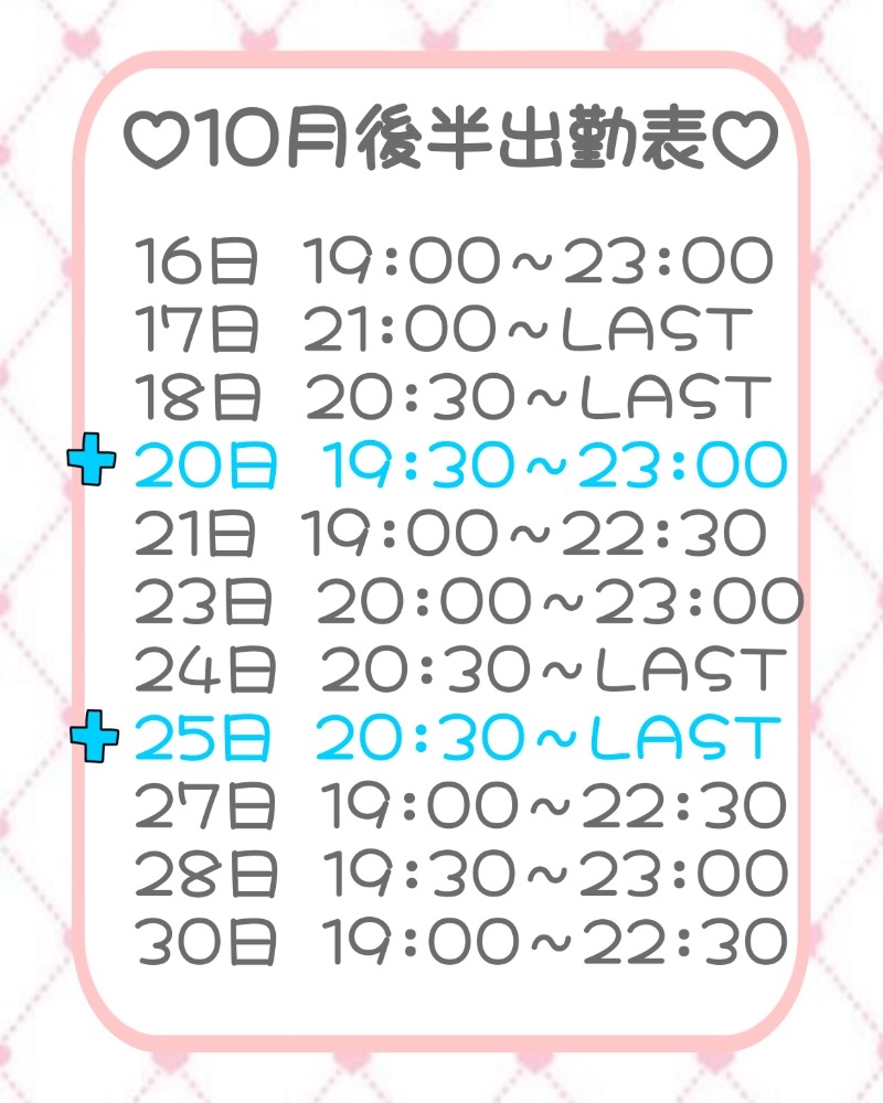 🍁10月後半の出勤表です🍁