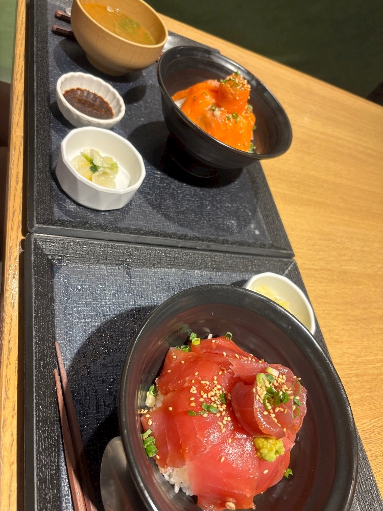 マグロ丼、サーモン丼、親子丼