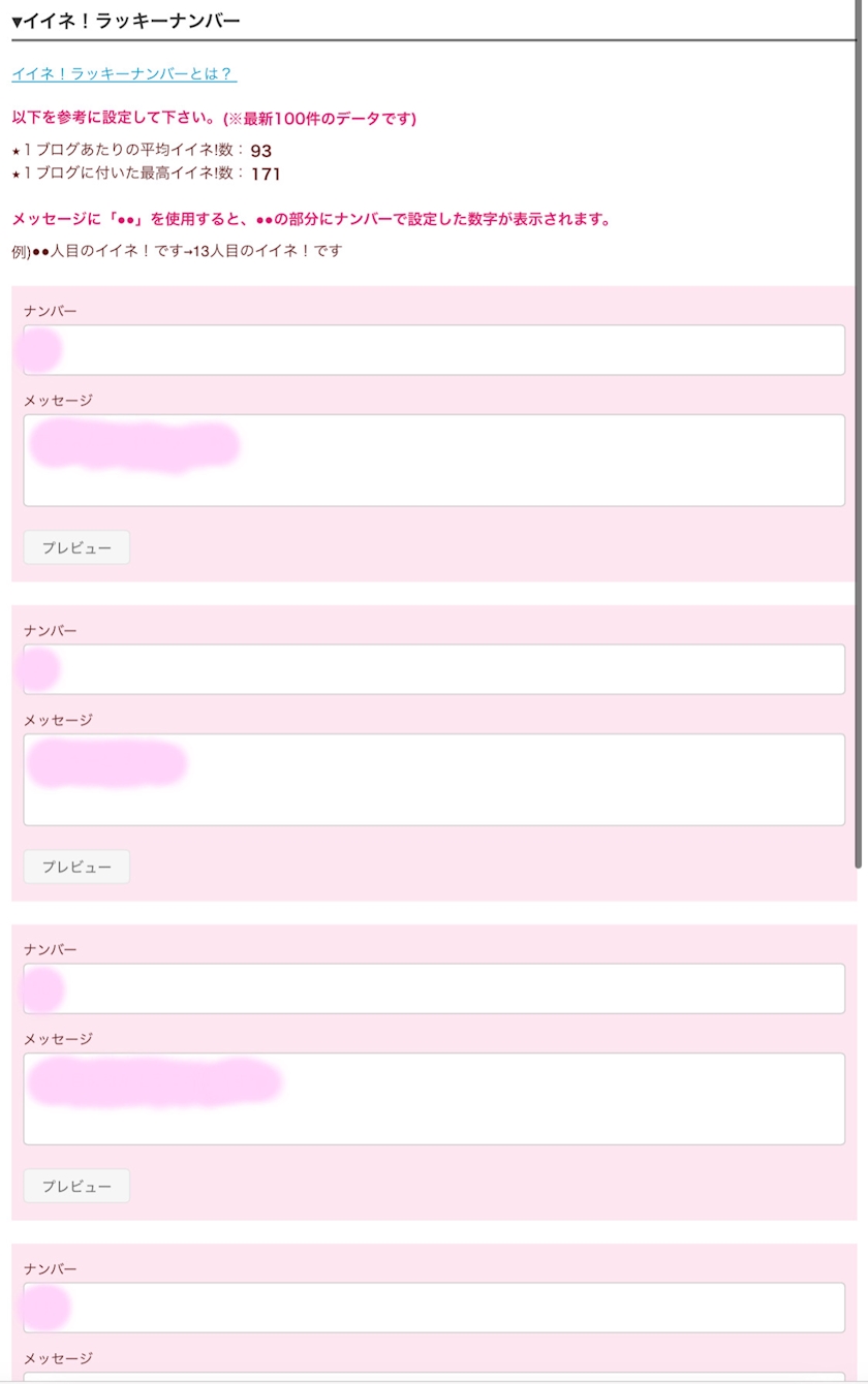 ②イイネ!ラッキーナンバーの設定