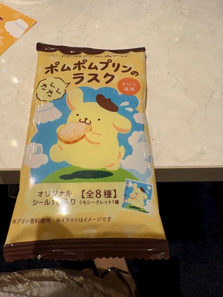 フリーのお席で頂いたポムポムプリンのラスク美味しかった😋