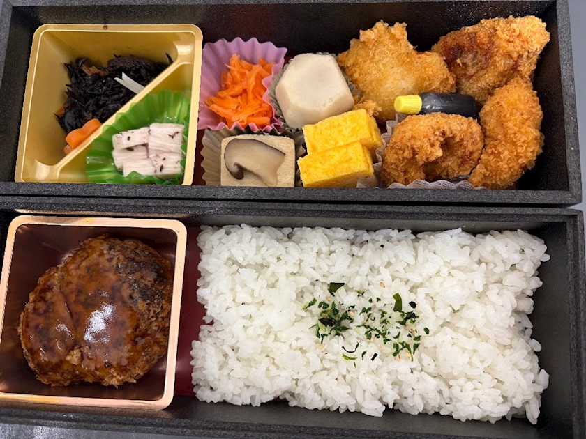 唐揚げにハンバーグ、だし巻き卵まで入った