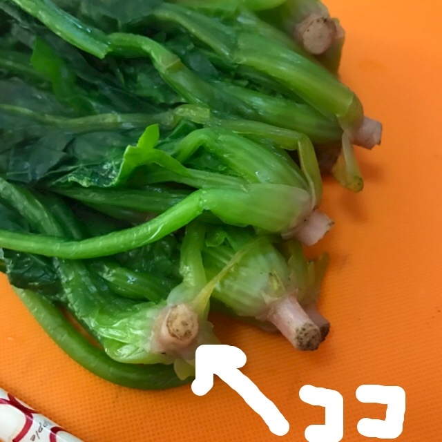 茹でる前に、ここに十字に包丁を入れてから