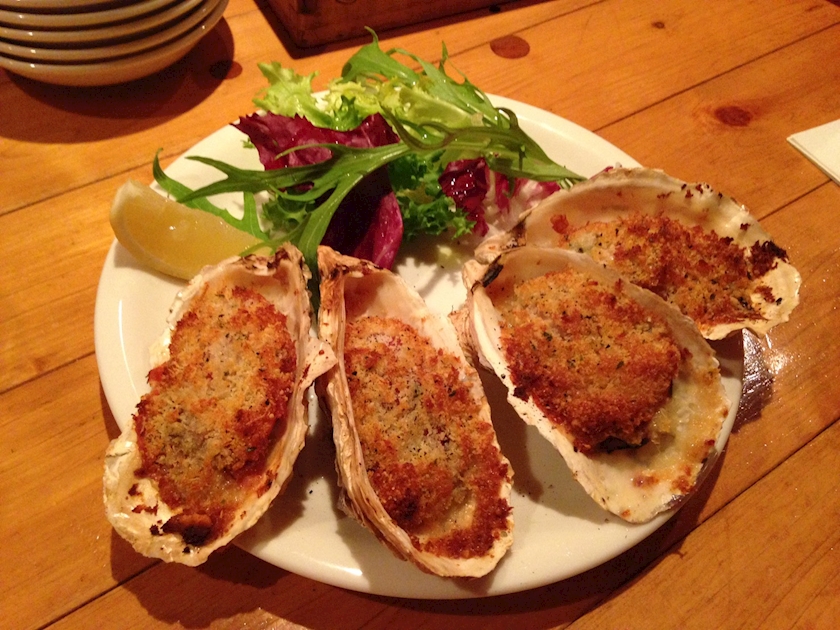 牡蠣と生ハムのチーズパン粉のオーブン焼き