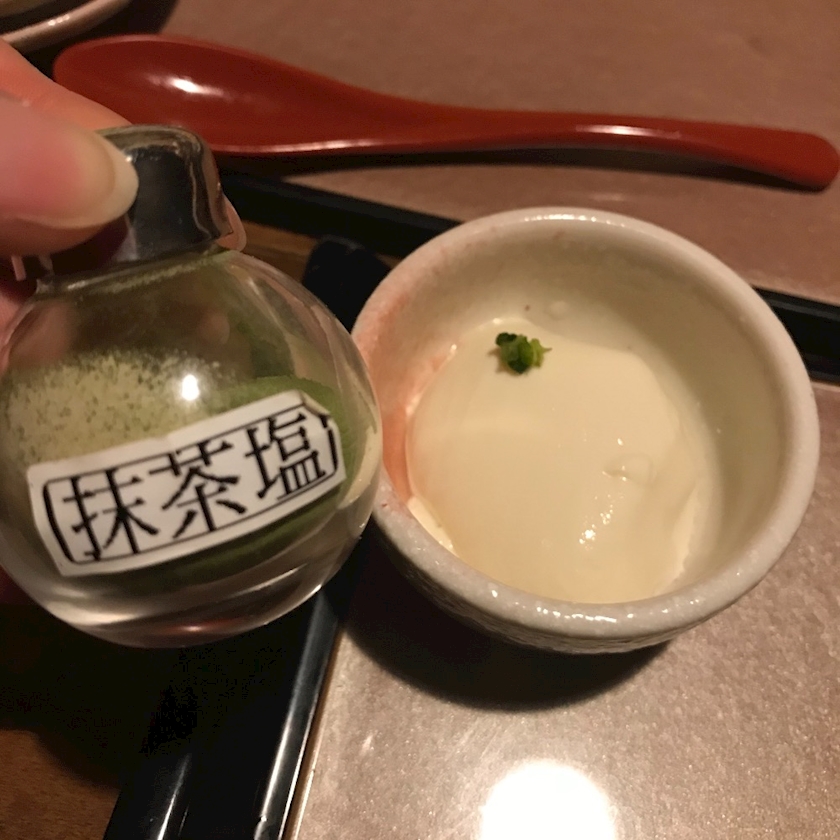 自家製お豆腐を、抹茶塩で♬