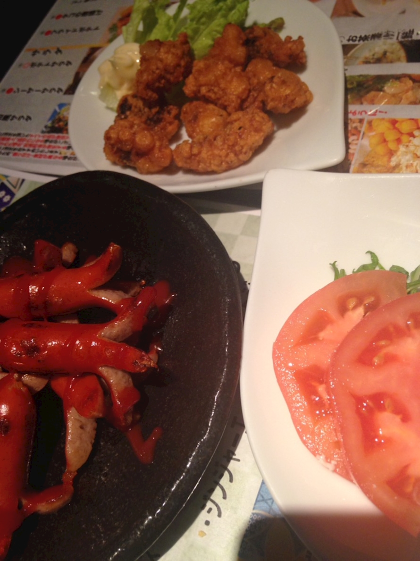 トマトスライス、タコの唐揚げ、タコさんウインナー