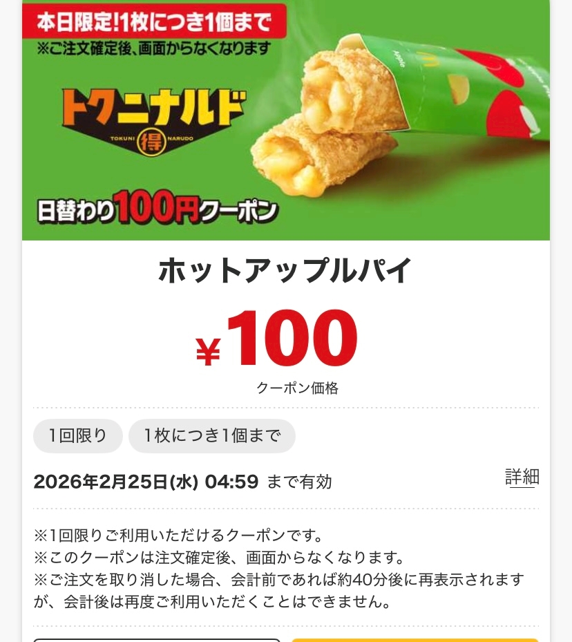 マックから期間限定の100円クーポン