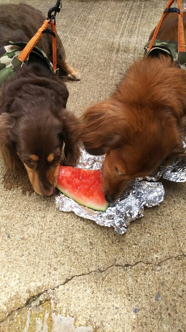 スイカ仲良く食べてたよぉ(*´ω`*)