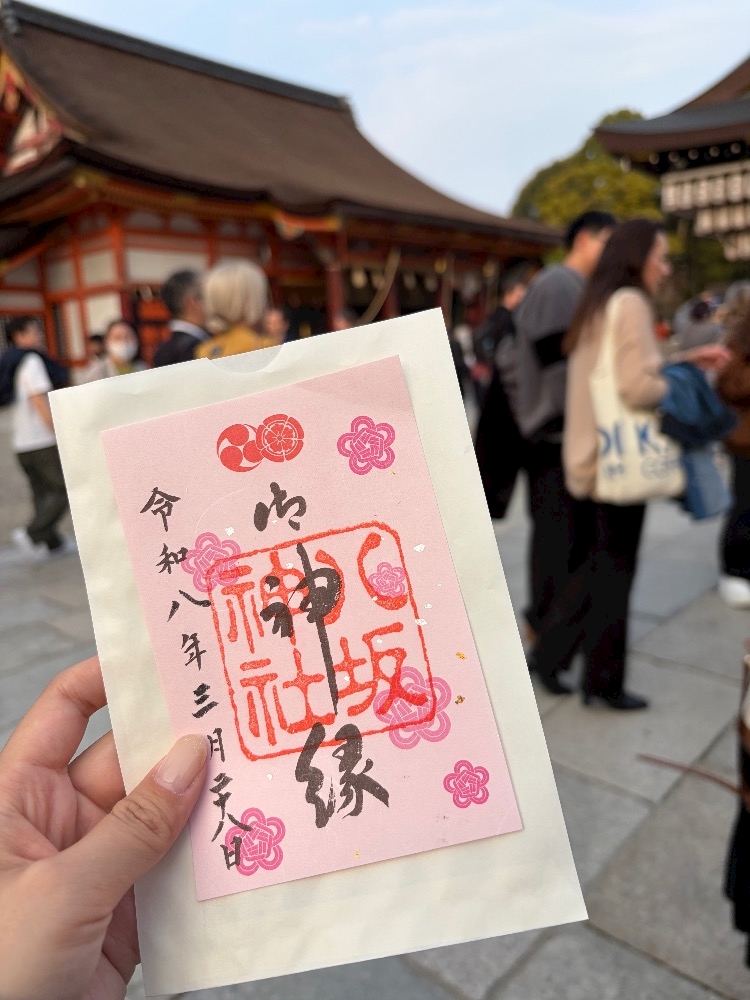 八坂神社のかわいいピンク色の御朱印🌸
