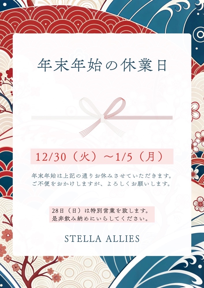 次の営業は1/6〜です🙌🏻