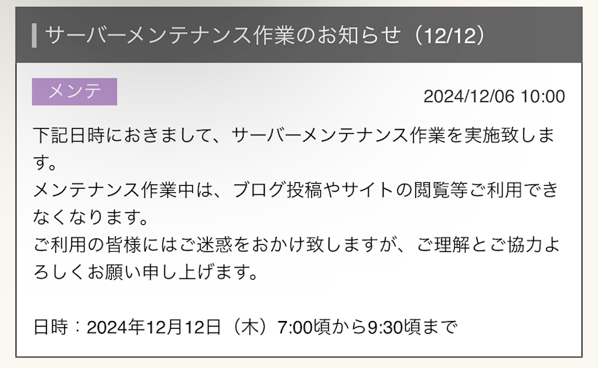 - どうやらメンテナンスがあるらしい🤔