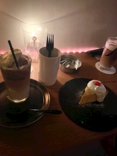 この前新栄?栄?の夜カフェに行きました(꜆꜄꜆˙꒳˙)꜆꜄꜆ケーキはとうもろこしのチーズケーキ!