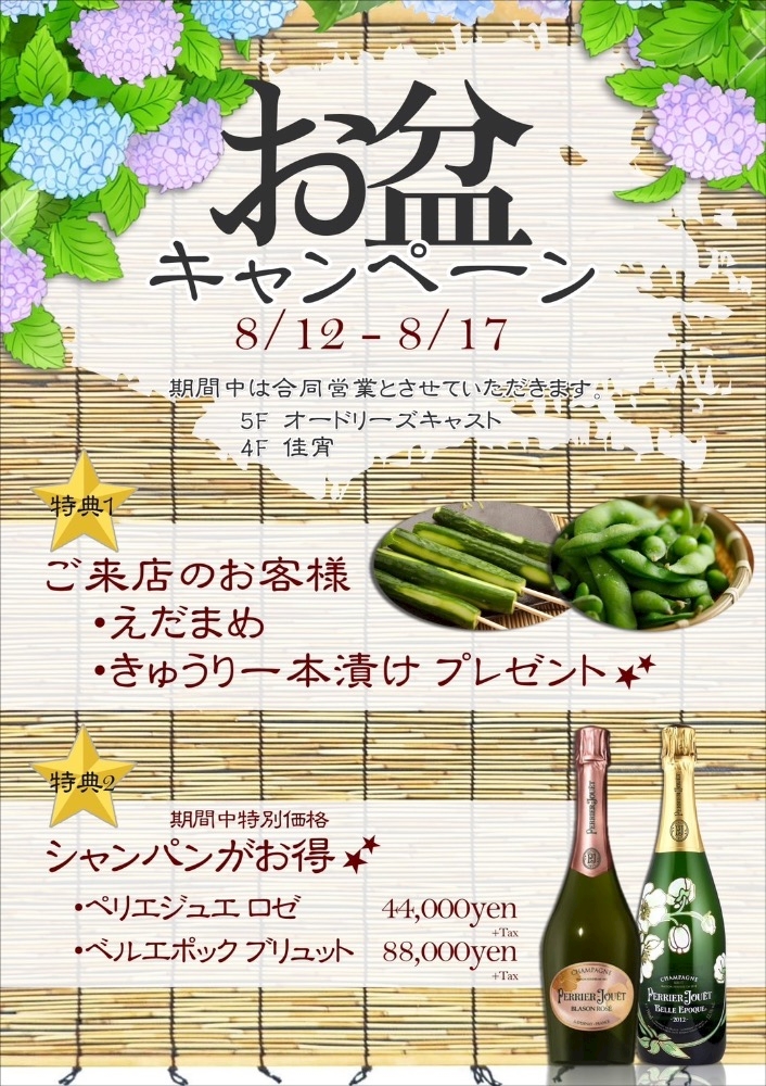 お盆期間中のお知らせ - 部長 原 理 - 名古屋 錦 クラブ・佳宵