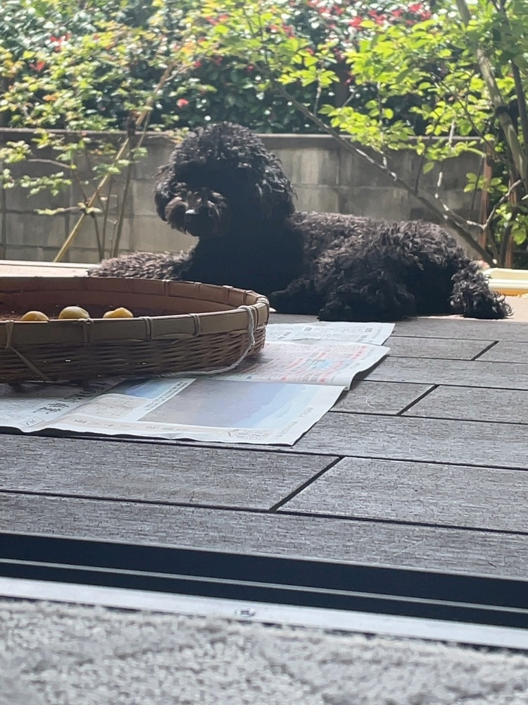 日向ごっこしている、るるちゃん(実家で飼っているわんちゃん🐶)の写真を見つけました👀
