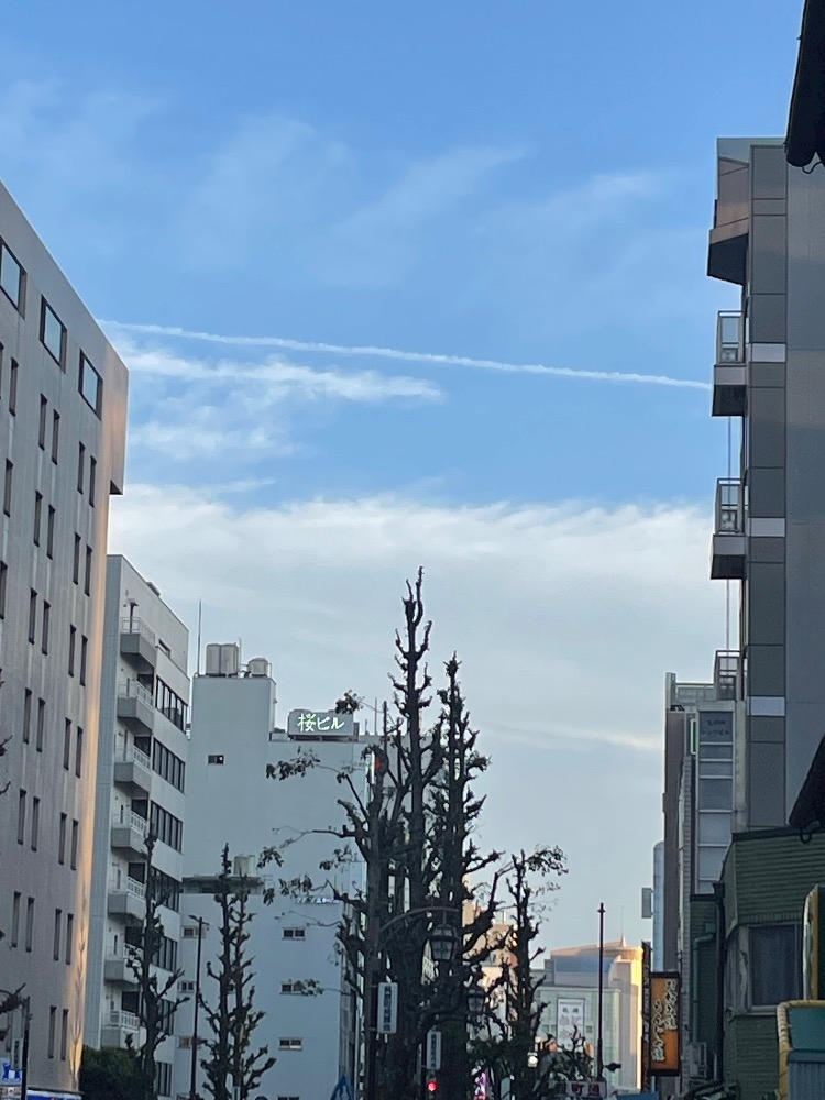 今日歩いていたら飛行機雲を見つけました☁️