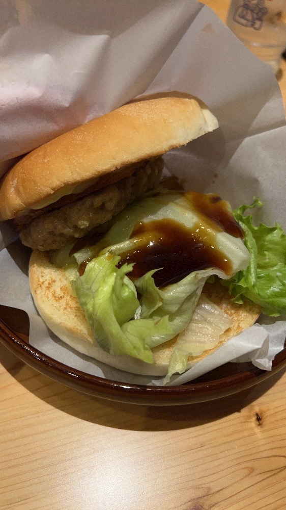 ハンバーグが上に乗り切ってません笑