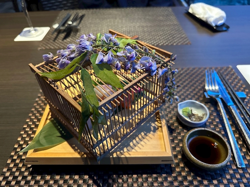お刺身のカゴには藤が乗ってて