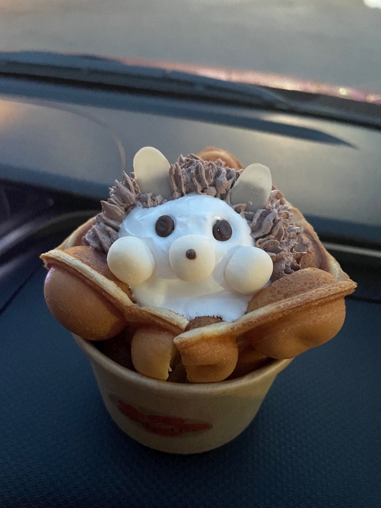 言われて買ってあげたハリネズミワッフル🦔🦔